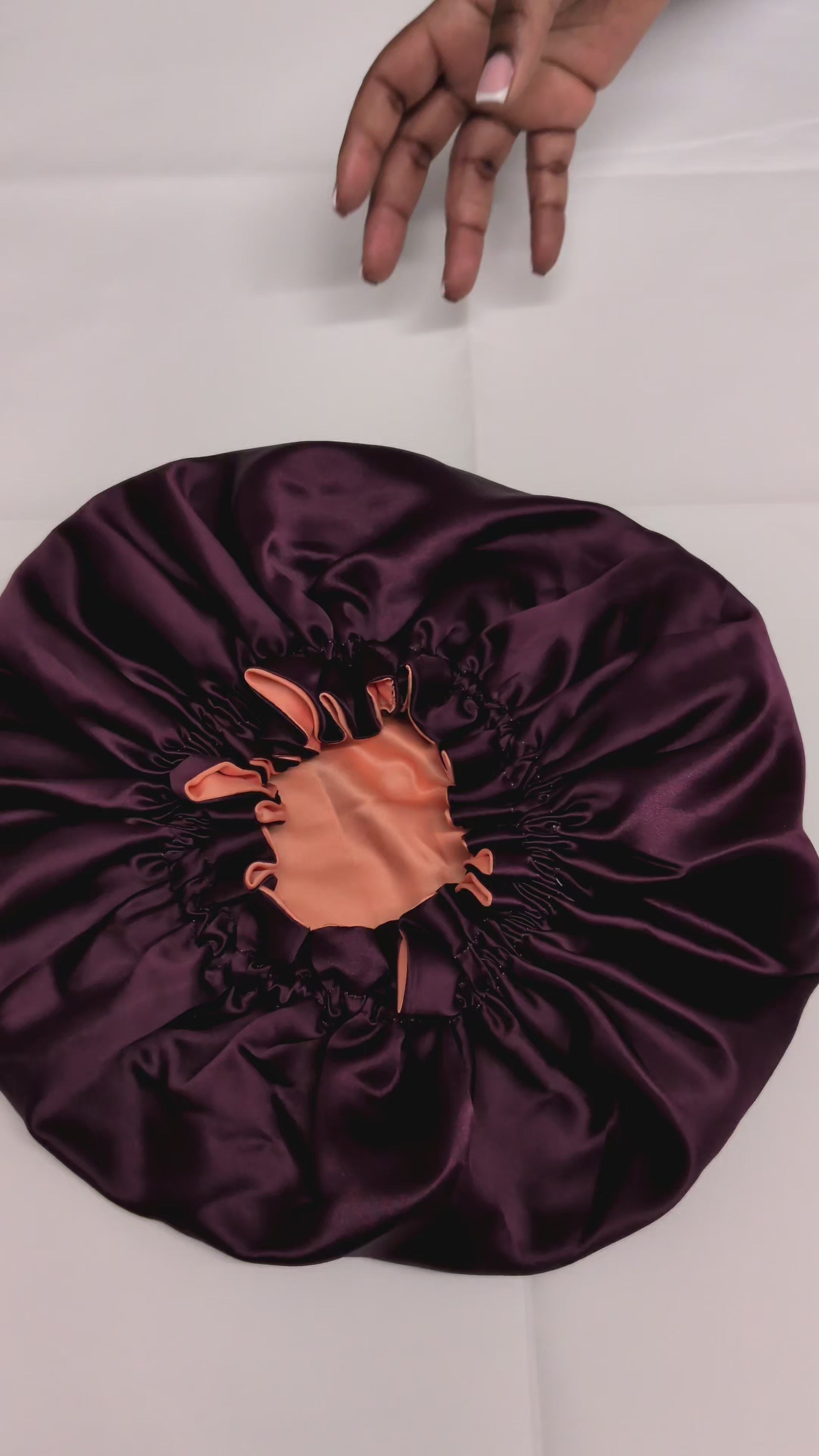 Our reversible satin hair bonnet offers versatile protection for all hair lengths.