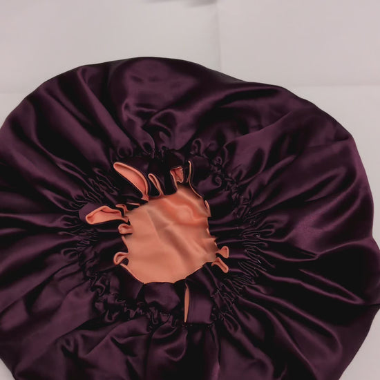Bonnet - Plum/Peach Satin Hair Bonnet